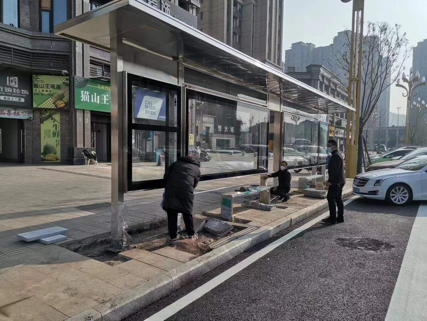 【鑫泰來候車亭】又一不銹鋼公交站臺案例