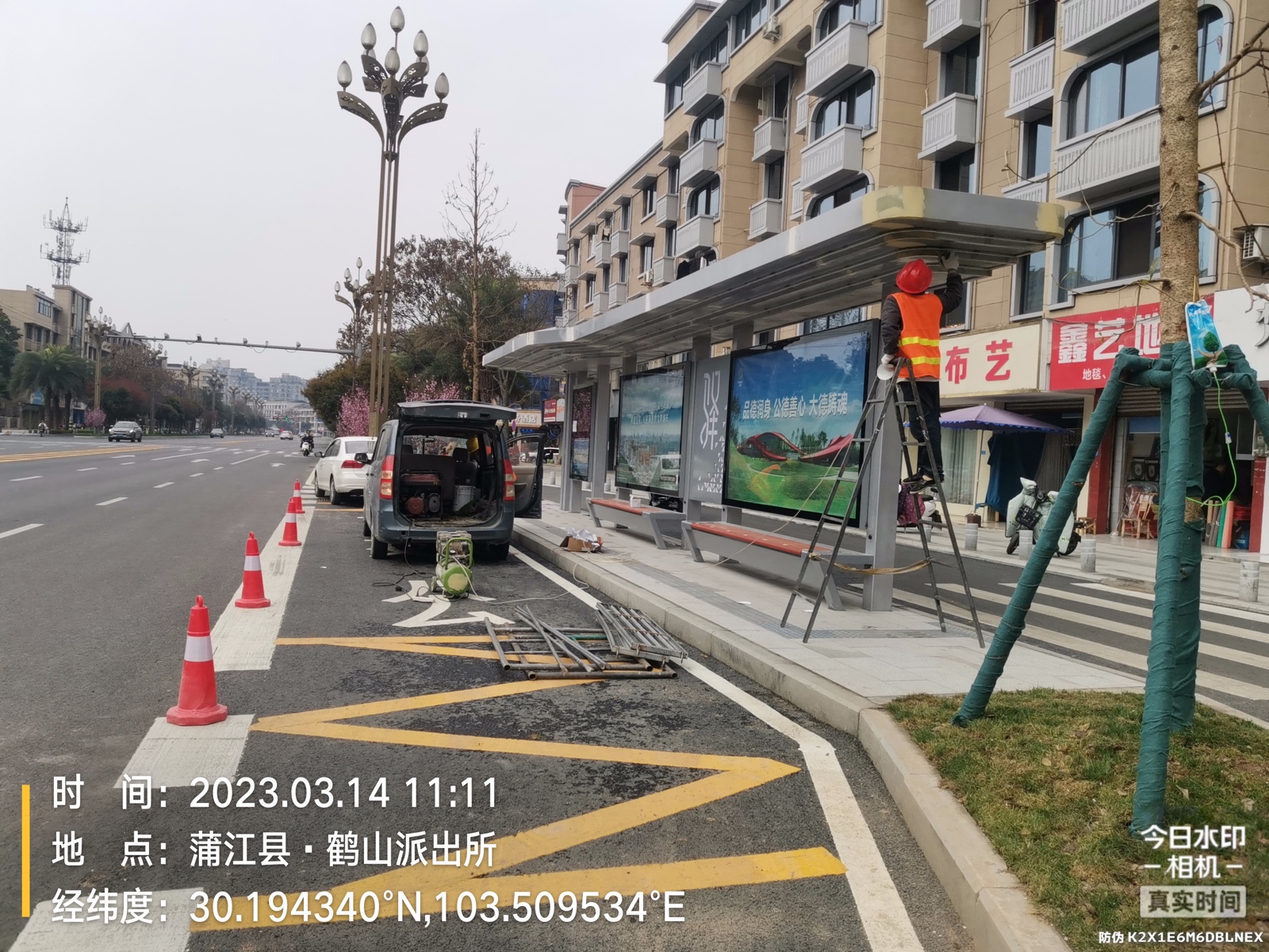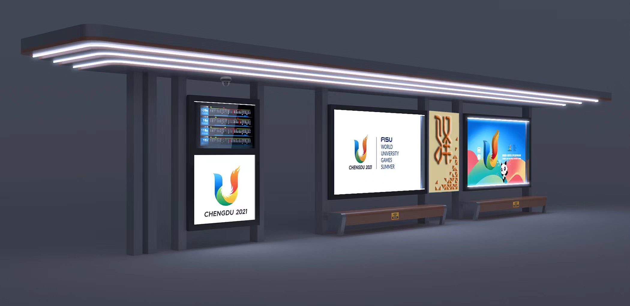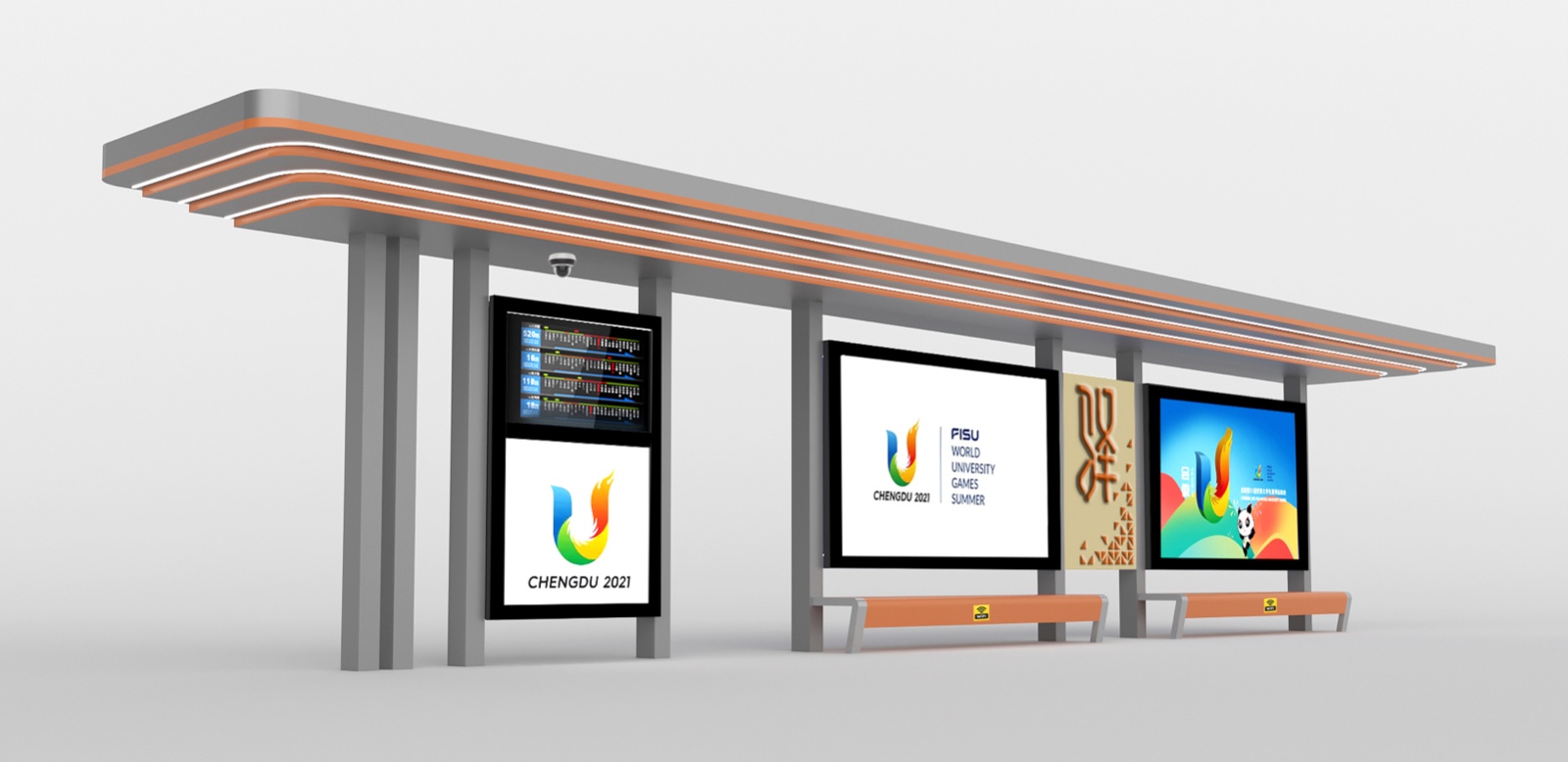 由我公司承建的四川蒲江朝陽大道、鶴山北路城市道路空間一體化改造項目--智慧公交站臺工程圓滿完工,造型呈一字形公交站亭,頂棚融入LED氛圍燈照明、每座站臺實現(xiàn)安全監(jiān)控、電子報站、座凳充電、地域特色LOGO。