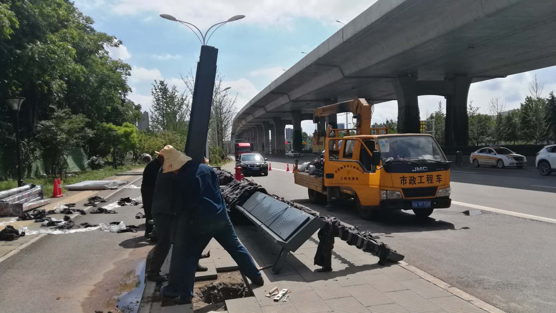 公司及時組織工程部的基建人員、安裝人員、項目經(jīng)理駐扎武漢現(xiàn)場,因地制宜的調(diào)配機具、車輛和安裝器械等,完成了從基坑-預(yù)埋-澆筑-清運-安裝-回填-路面恢復(fù)等全部施工內(nèi)容,并交付使用。